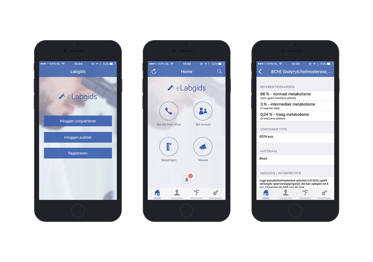 Referentiewaarden, contacten en nieuws uit het lab zijn met de eLabgids altijd en overal bereikbaar. eLabgids bestaat uit één database die ontsloten wordt via een responsive website en apps voor iOS en Android. Via deze digitale kanalen kunnen zowel laboratoriummedewerkers als huisartsen en andere externen altijd up to date informatie raadplegen. Contact opnemen kan met één druk op de knop.